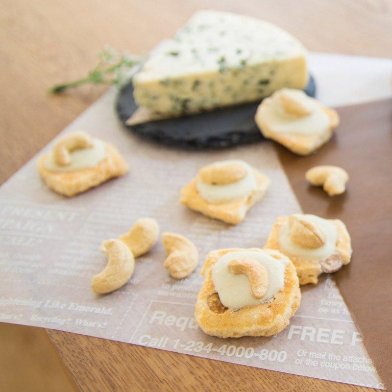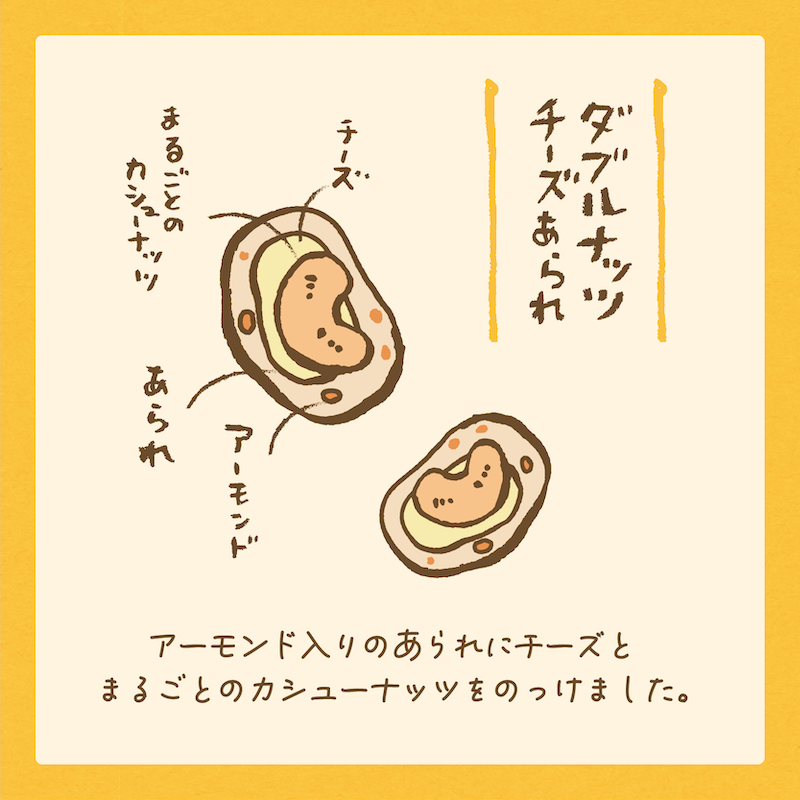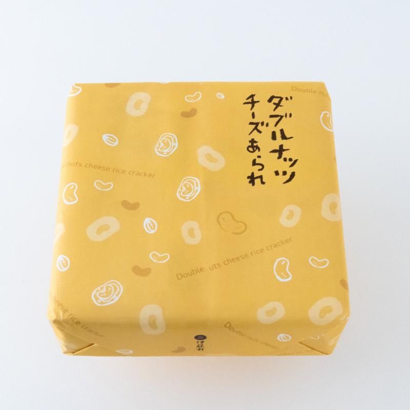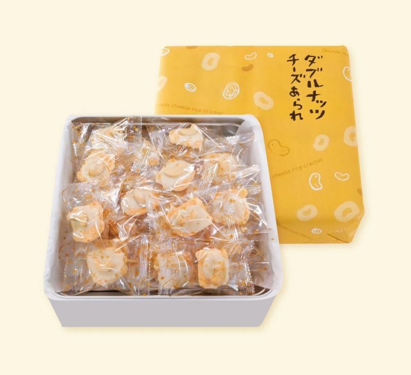 冬季限定の人気商品「ダブルナッツチーズあられ」に進物が登場です!アーモンド入りのあられにチーズとまるごとのカシューナッツをのっけました。