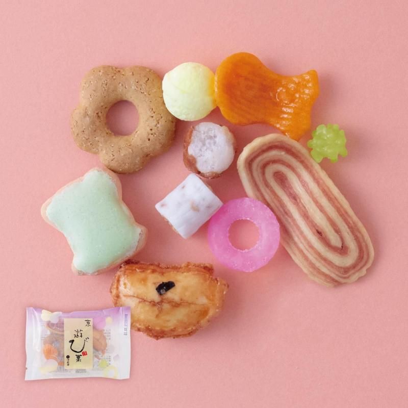 梅ぜりぃ1個、あんきり1個、酒米飴1個、かすてらパン1個、